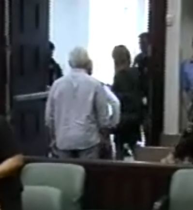 A fellow sitting in front of G & C early in the hearing flashed a piece sign when he saw himself on the monitor.