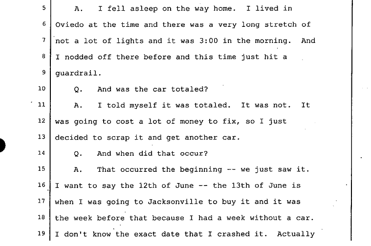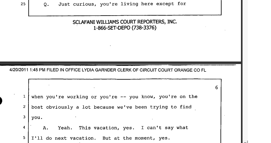 Didn't CM say that he wouldn't go to Miami when she was off the cruise ship to interview her? He knew where she was. If he wanted her depo earlier he could of gotten it.
