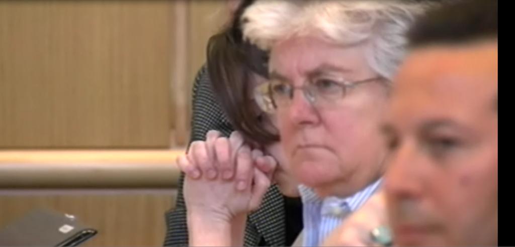 Maybe she is clicking her heals together real hard under the table and hoping she can be Dorothy and find herself somewhere else. Too darn bad her shoes are not red!