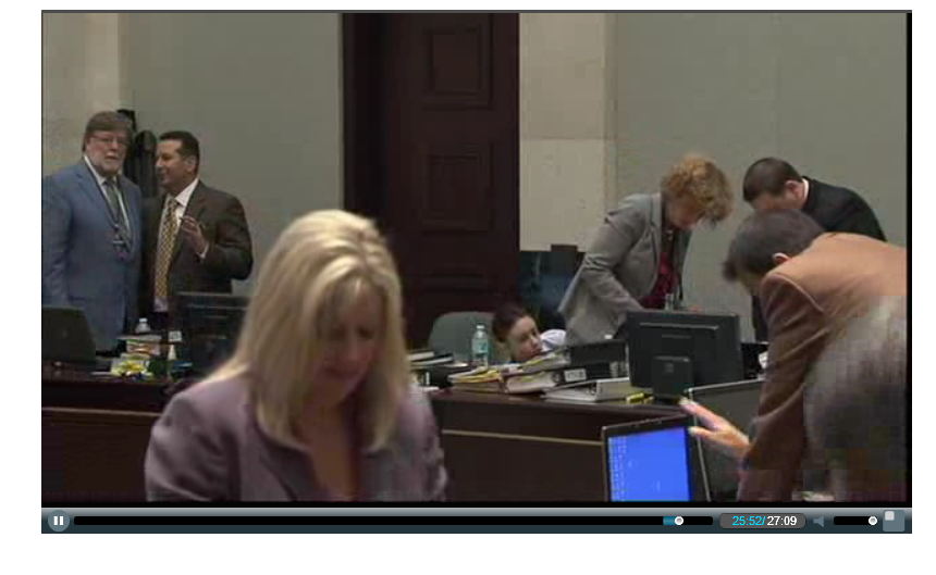 I don't know if anyone else heard this but...after the camera's went to the color bars at the end of today's hearing on WFTV.com, I'm sitting her trying to figure something out and left it on for a few minutes until I was done. After a couple of minutes I hear a males voice say "Testing, one, two, three", he sang the line from an old song (like testing the microphone) and then I heard a woman's voice say "How can she live with that playhouse in the back yard knowing her granddaughter was back there". Then it cut off. It wasn't Bill Shaeffer, I'm sure of that, but I don't know who the guy or the woman was. That was tacky letting that go out over the air.