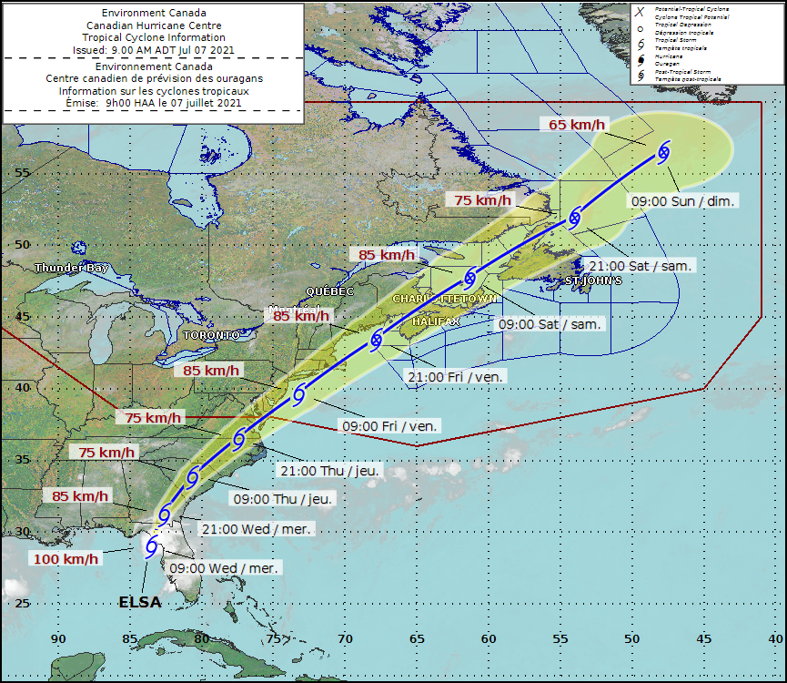 Tropical Storm #Elsa has made landfall in the big bend of Florida with max winds of about 65 mph. The storm will track inland east of the Appalachians, bringing heavy rain with it over the next couple days. Tropical Storm Warnings have been issued for the coastlines of Georgia and South Carolina, as strong winds off the water still expected on the east side of Elsa. Tropical Storm Watches also extend into the Mid-Atlantic, as Elsa will track close to the coastline bringing rain and gusty winds on Thursday night and Friday. Stay in touch with your local NWS office at weather.gov/socialmedia for details on impacts to your area. Stay safe!