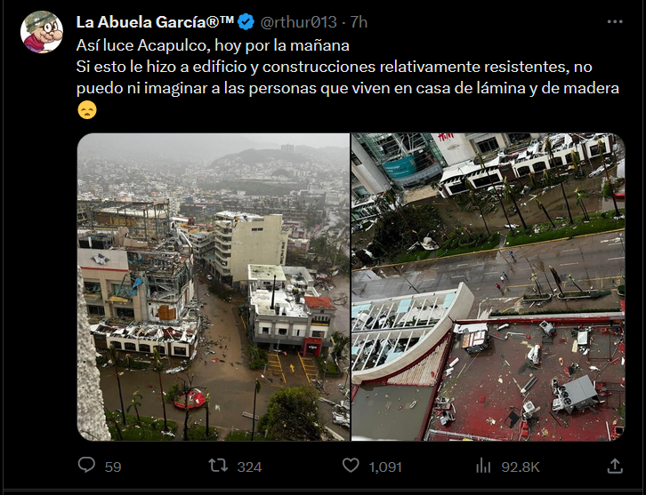The NYT is reporting that the internet in Guerrero State is completely disrupted as well, and communications are ‘lost’ so they’re isolated at the moment. That happens here in NS with less severe hurricanes. With Dorian and Fiona even our land lines became overloaded and failed.