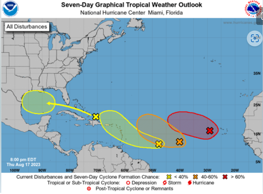 Disturbance 3 has a 20% chance of development within seven days, while Disturbance 4 has a 30% chance of development......
