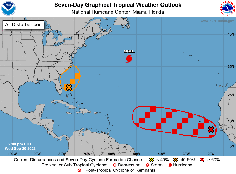 As of Monday’s forecast, the NHC has Nigel staying out to sea.