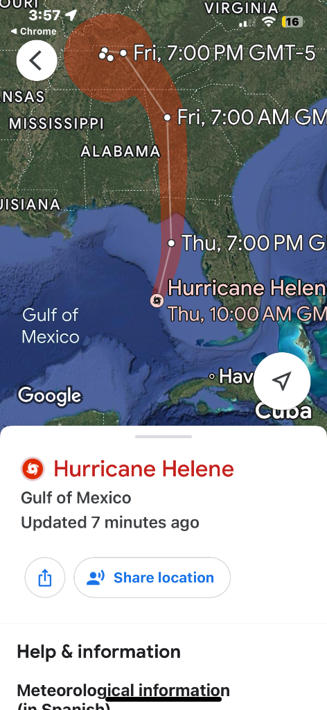 View the Hurricane Helene on Google Maps