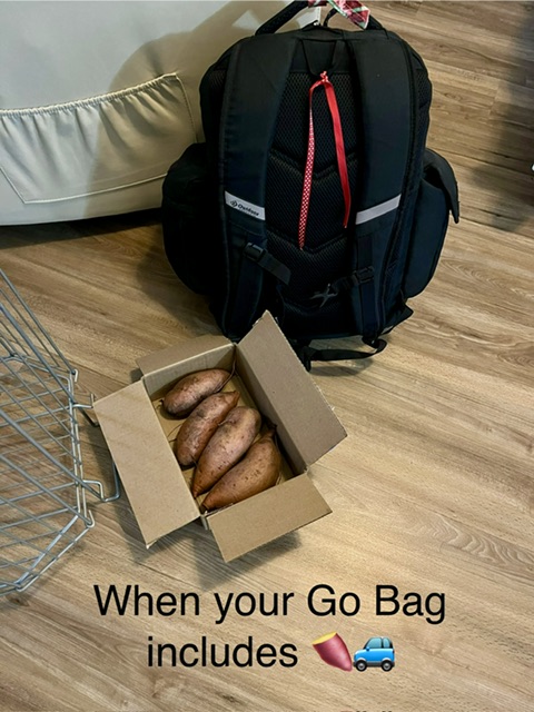 So I’m packing as if I’m evacuating. Clothing, electronics, sewing stuff and sweet potatoes! LOL! I’ll check the path tomorrow when I finish my appts.