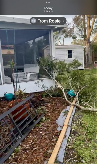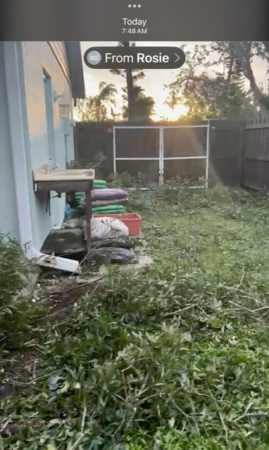 Wonderful news! I know you are so relieved to see the photosThe house is intact! The fence is still up! We have water! No power. No internet. My sweet neighbors took video and walked all around the house to look for damage. I’ll drive home on Saturday. My daughter will ride with me.