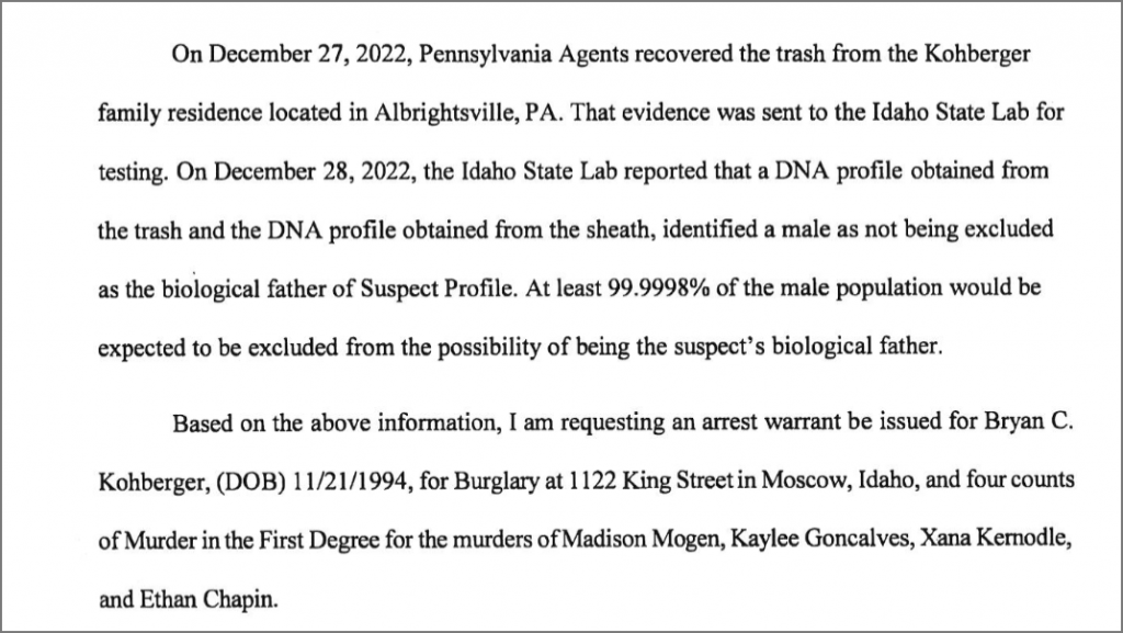 In my opinion, BK was POI #1 because he was the owner of a white Elantra with no front plate, lived nearby, and could not be excluded from DM's description. LE Moscow stated they had applied for, I think 55 warrants. IMO, that must have included AT&T in order to get cell phone ping data.