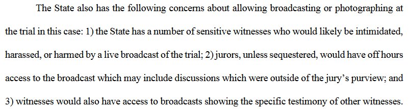 And Both the prosecution and defense wrote points supporting NO CAMERAS in the courtroom.