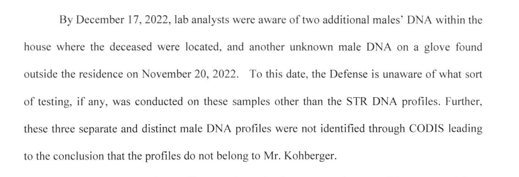 The vacuum (the wait trial) is being filled with nonsense and hot air. Which amplifies things that we’ve been talking about since November 2022. Like the likelihood that there are dozens of unknown dna in a house that had a zillion parties.