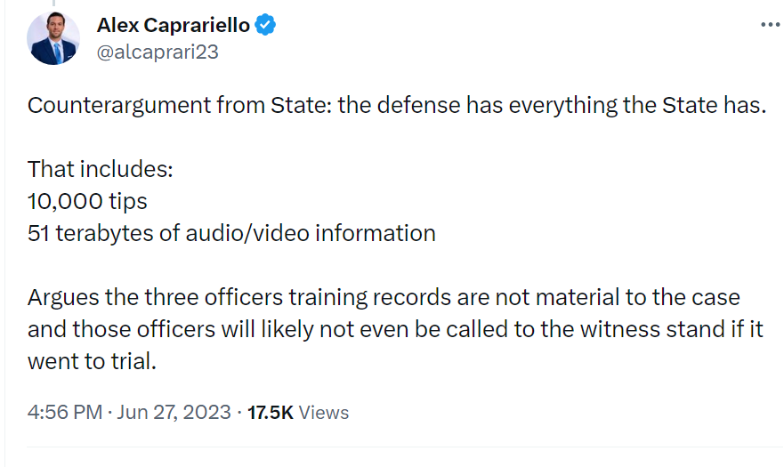 The request for office training information does not bother me. It is important to verify that officers handling evidence in the chain of custody are appropriately changed. It is important to verify that the officers taking initial reports from the two survivors were appropriately trained and kept appropriate records.