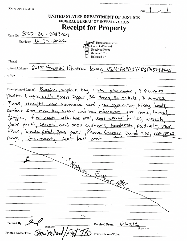the steering wheel--if my bloody gloves are still on or I'm worried I might have blood on my sleeves that could transfer, I would have already put a small trash bag over it and secured it with tape around the steering column, but not so tight that I can't operate my turn signal or turn on my headlights