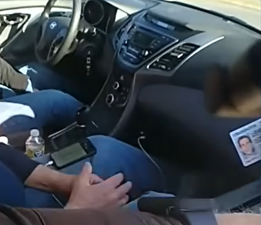 Good catch! I never noticed that what appears to be his DL is visible in the right bottom corner (held by the LEO, right?)