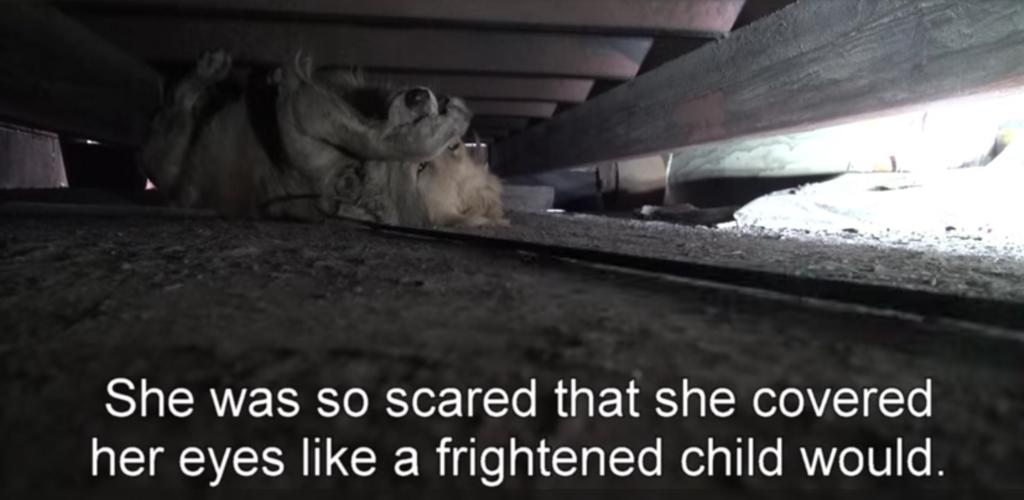 The long minutes before 'Clarabelle' realizes she's not going to be hurt as rescuers try and pull her out from beneath a dumpster are just heartrending. She even covers her eyes like a frightened child. But the end of the video showing a clean, fed and healthy Clarabelle jumping for joy will bring a smile to anyone's face.