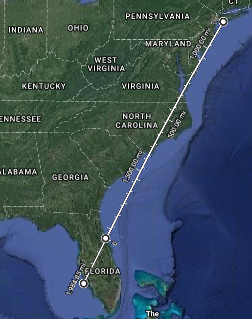 When I connect JANE DOE Nr.3 ( mother of toddler, found just off the service road on Jones Beach) in a straight line to where LAQUETTA GUNTHER was found (alley across from 650 between 703/705 North Beach St, Daytona FL) or Daytona Beach in general or Atlantic City in general, look at the locations: