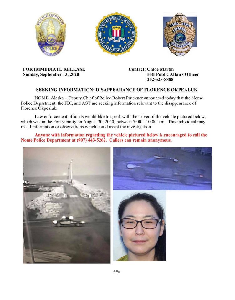ANCHORAGE, Alaska (KTUU) -The Nome Police Department remains as the agency in charge of the investigation into the disappearance of Florence Okpealuk.