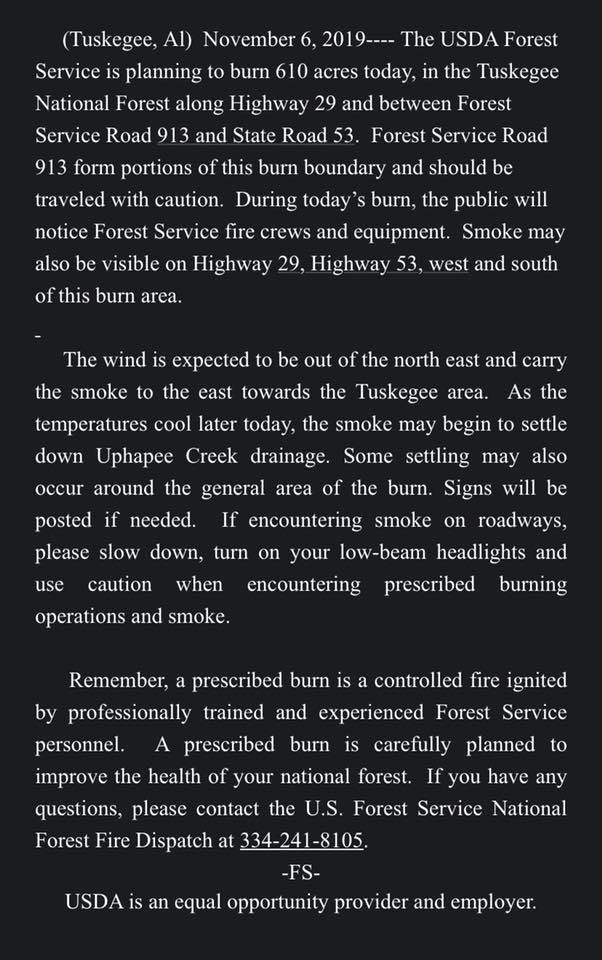 UPDATE: Controlled burn has been called off! Crazy how long it takes government agencies to communicate lol. I mean...I see where that could happen. How was AUPD supposed to know that a controlled burn of that exact area was scheduled to occur. & it’s not like the Dept of Conservation is an agency that you’d usually keep in the loop on a case (in a case like this as far as state agencies I’d think ALDOT would be the main one aside from the normal ones)...but come on man!! You’d think at least someone at Conservation would have thrown a flag on that play immediately when it was mentioned!!