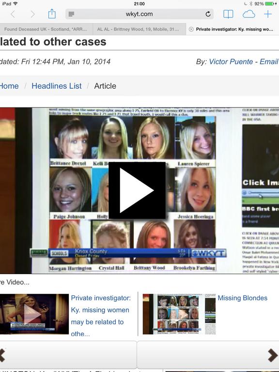 There's a link on that MSM page to the guy's blog, he has BW listed but her first name is spelled incorrectly and the picture is NOT our Britt... Is there another missing BW I'm not aware of?? Personally I don't think for a second that BW is connected to any of the other missing ladies he mentions but should we at least try and get him to correct the name on the picture or put the correct photo with the name or whathaveyou? Or do you guys think his photo/name match is correct, and it's just a different Miss Wood?