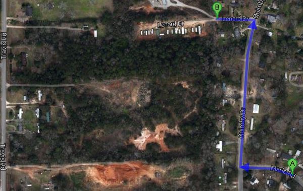 Using your map link....I zoomed in a bit and marked Dustin's house (A) and Chessie's house (B). This shows the area between Travis Rd and Quimby, where they searched today.