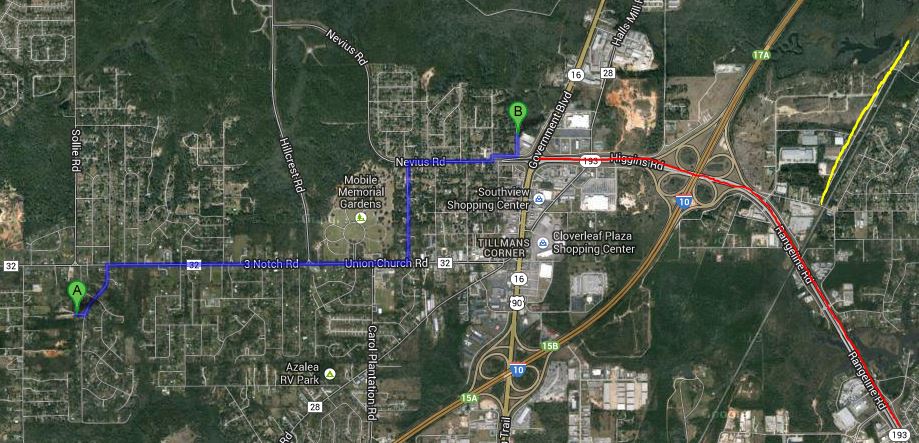 Derrick was in the Dozier Lane area - B on map.
