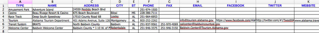 PLEASE - work from the inside out; begin with locations closest to Mobile and expand out to further locations.
