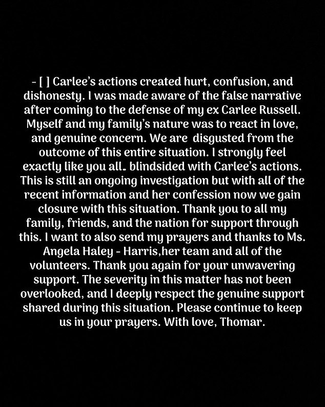 “I just went in and hugged Carlee and I told her that I’m so happy that she’s alive and I’m so happy she’s okay,” says Harris, who let Russell rest during the brief visit. “She hugged me back and she was like, ‘Thank you for everything you’ve done.’”