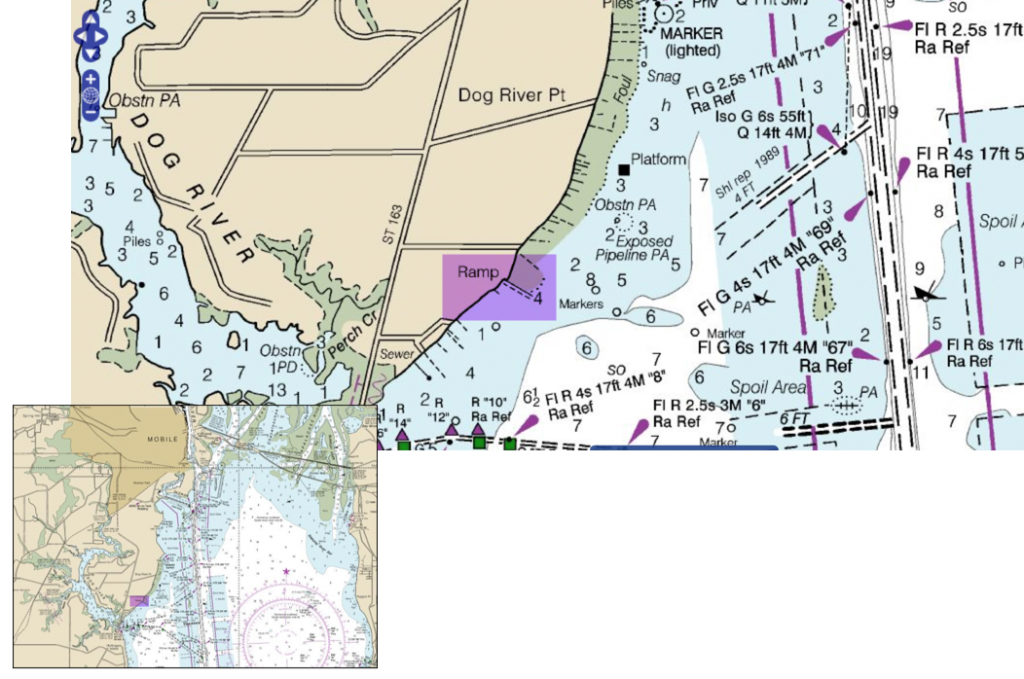I was actually looking slightly south of your purple box at the tip area where ST 163 goes over water to Hollingers Island and is on the map as a fixed clearance bridge (originally I thought it was a draw bridge but its not). On one side of the bridge nearer to Hollingers it looks like we have 13' at low tide and on the other side of the bridge there is some kind of channel that looks to be set up to get sailors through what seems to be oyster beds or some marked special fishing area.