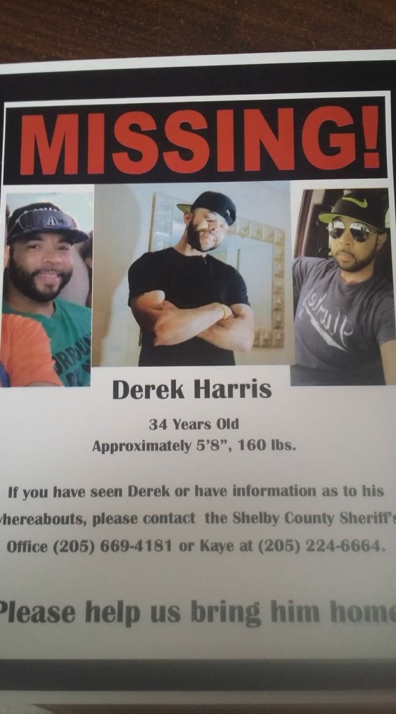 Please share the picture below and help us locate a missing person. Derek Dewayne Harris was last seen by his family on Sunday, December 30th, when he left his residence in Columbiana in a 2015 GMC Terrain. The car he was driving was found abandoned in Calera the next day. Mr. Harris is a light-skinned, black male approximately 5'10" and 165 lbs. If you have any information on Mr. Harris, please contact Investigator Derek Dixon at 205-670-6039 or you can leave an anonymous tip at shelbyso.com.
