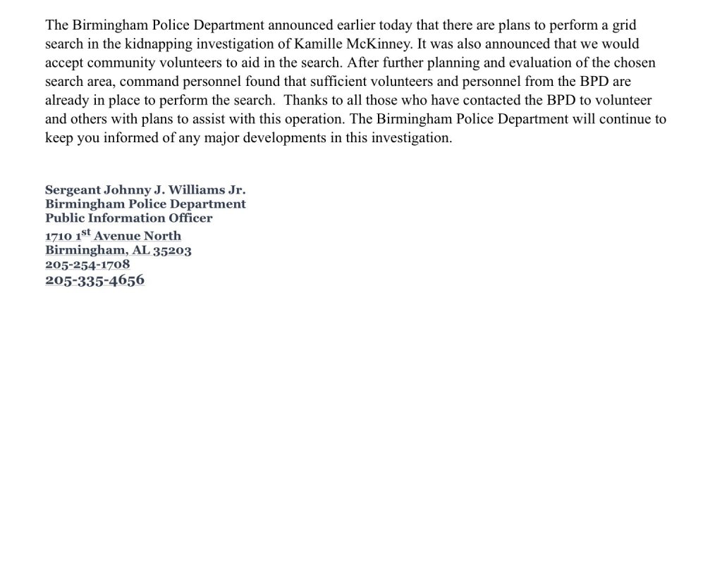 Saint James African Methodist Episcopal Church near Tom Brown Village has invited everyone to join them and pray for Kamille's safe return.