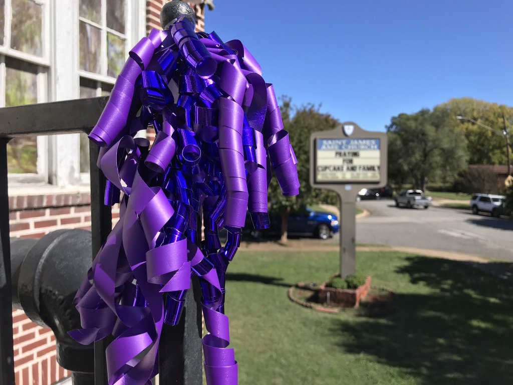 St. James AME church next to Tom Brown Village has opened its doors to allow people to come in and pray for the family of Kamille “Cupcake” McKinney. They have put out purple ribbons because her favorite color was purple. @WVTM13