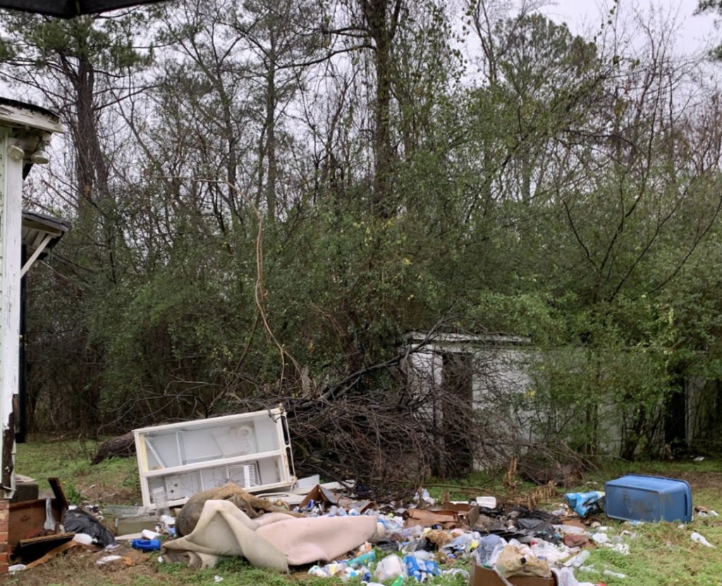 I agree. I hate to be so morbid but the large thick rug in the yard seems like such an obvious choice for coverage, maybe there were other rugs, too. But, if she died somewhere else, maybe they brought her to the property wrapped in something. If someone’s going to move a dead body, some fabric or tarp would make it much easier. There’s even a refrigerator, it looks like they dumped everything in the yard that they didn’t want when they moved out, it certainly wouldn’t surprise me if there was also an old blanket, sheet or tarp left by the previous tenant.