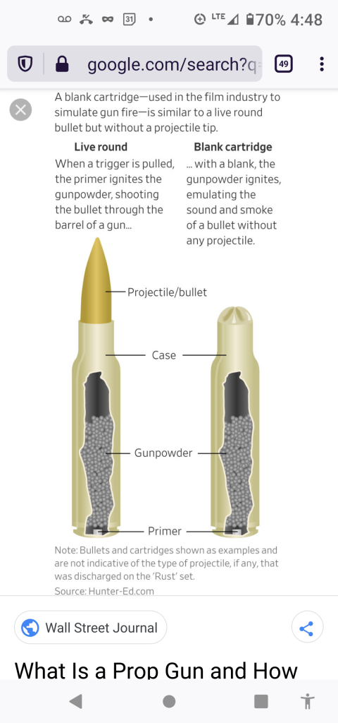 And then a dummy round looks like the real deal but can not fire or make noise. Baldwin's gun was supposed to have been loaded with dummy rounds.