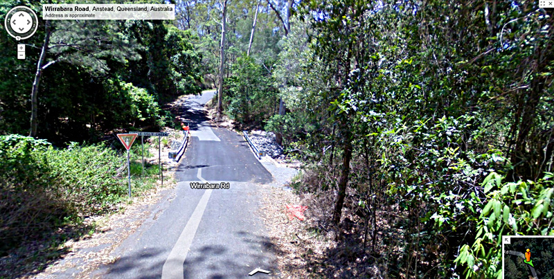 Thanks for the shots Makara....I really do feel that's where he put her...when there's such an isolated road like Wirrabarra why take a chance of being seen stopped on a main road like Mt Crosby/Kholo Bridge.