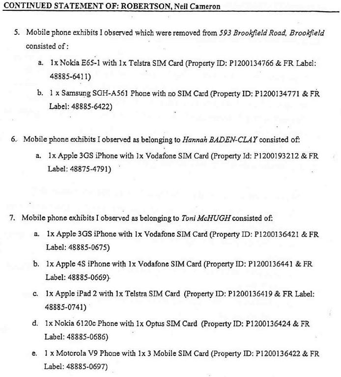 Attached below are the lists of phones confiscated from GBC and Toni McHugh, as mentioned in the Computer Analyst's affidavit.