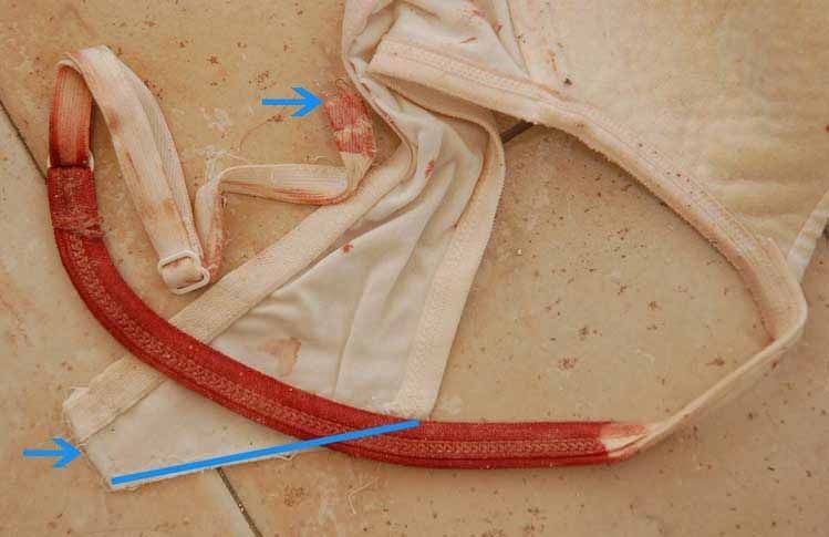 Here, we can see how much she bled on the bra while she was wearing it