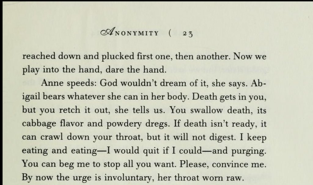 Susan describes how the three sisters dealt with the death of their father and brother. She said they played into the great hand that took first one then another and dared that hand. One sister did this by eating and purging. Notice what she says about how Anne dared the hand. Anne speeds: God wouldn’t dream of it, she says.