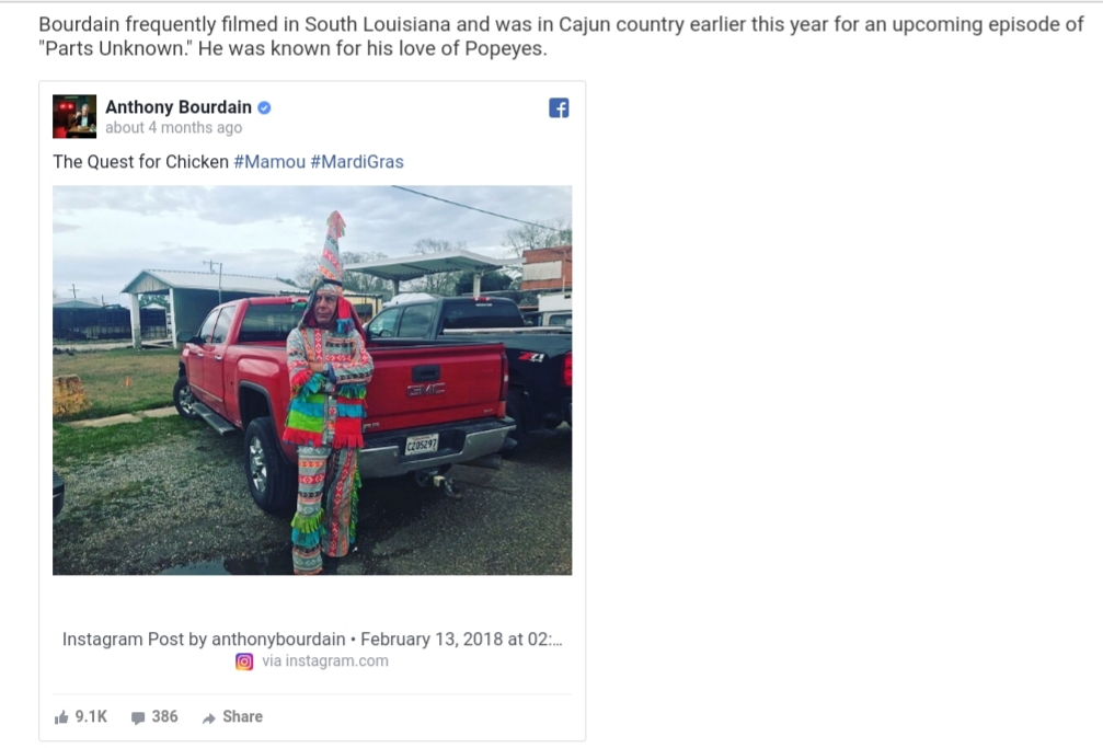 Bourdain frequently filmed in South Louisiana and was in Cajun country earlier this year for an upcoming episode of "Parts Unknown." The Louisiana shot episode is scheduled to air June 17.