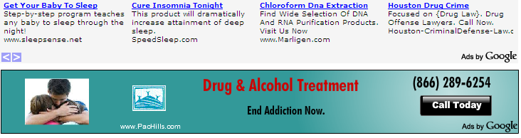 She clicked on one of the links whose page produced the following Google syndicated ads (note, I do not know where on the page these ads were located):