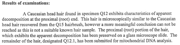 FBI Oak Ridge Lab report on the decomp in the hair. The next report shows the mDNA report, on the same hair.