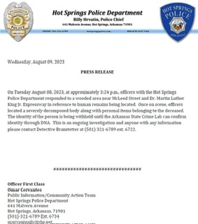 "This is an ongoing investigation, if you have any information pertaining to this case please contact the Garland County Sheriff's Office Criminal Investigation Division at 501-622-3660," Schroeder said.