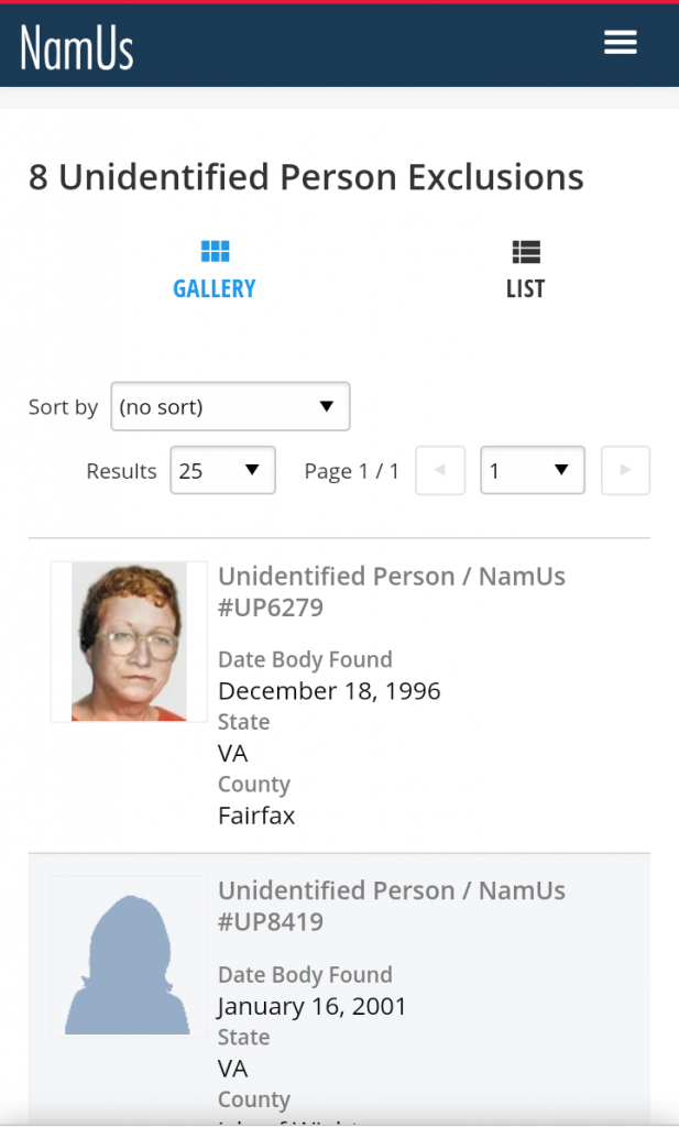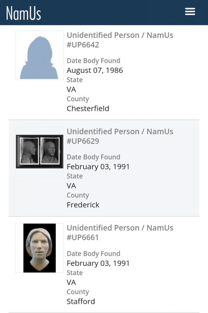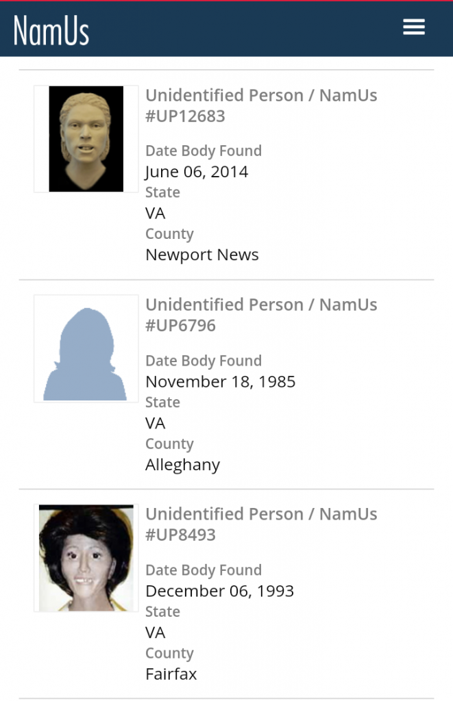 The National Missing and Unidentified Persons System (NamUs)