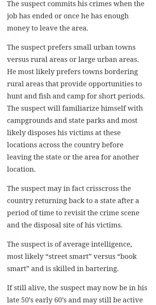 Basically trying to get an idea of who the person that took Morgan is, what kind of Life he lead and probably still leading, they suspect he's a transient serial killer but it's just an analysis obviously, but found it very Eye opening and haunting too! IMG_20200921_211521.jpgIMG_20200921_211523.jpgIMG_20200921_211525.jpgIMG_20200921_211528.jpgIMG_20200921_211552.jpgIMG_20200921_211555.jpg