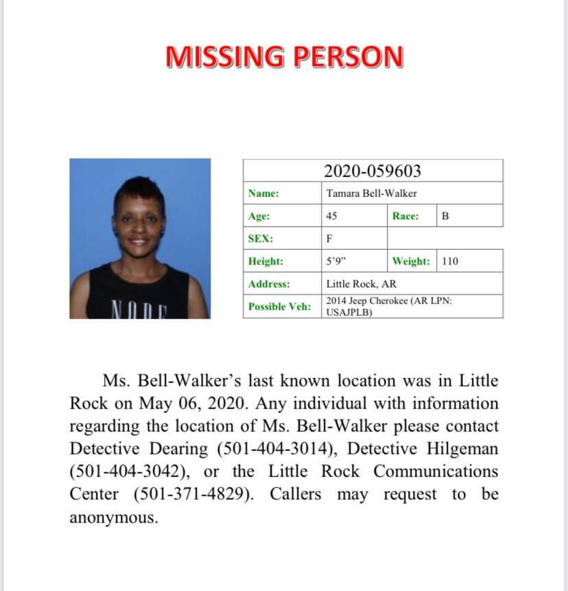 Tamara's husband, Corey Lamont Walker Sr., was found dead in his car in the 100 block of Larch Street in Little Rock on June 5. He'd been killed by gunshot wounds to the upper half of his body and his car had crashed into a pole. His death was initially said to be a suicide, but police later retracted this ruling and said it was still under investigation. It's unclear whether Corey's death had anything to do with his wife's disappearance.