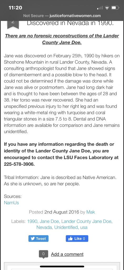 If anyone else can review Jane Doe records in the area suggested with similar demographics to Shantelle Hudson we need your help! It’s entirely possible we could have missed a Doe and additional eyes are needed.