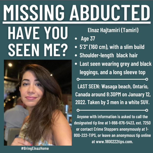 CANADA ARREST! Canada - Elnaz Hajtamiri, 37, Abducted following home invasion, Wasaga Beach, Ontario, 12 Jan 2022
