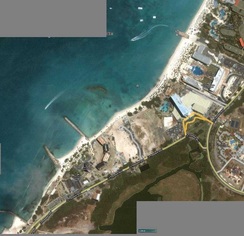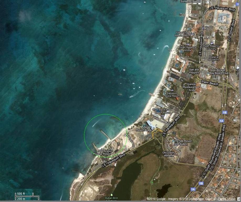 De Telegraaf said that tourists spotted the bone in the sand on Riba Beach which flanks the Divi Aruba Phoenix Restort (to the left and behind).