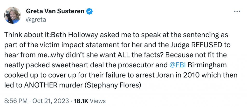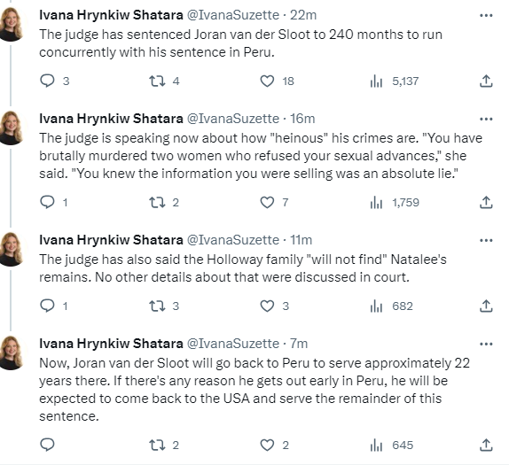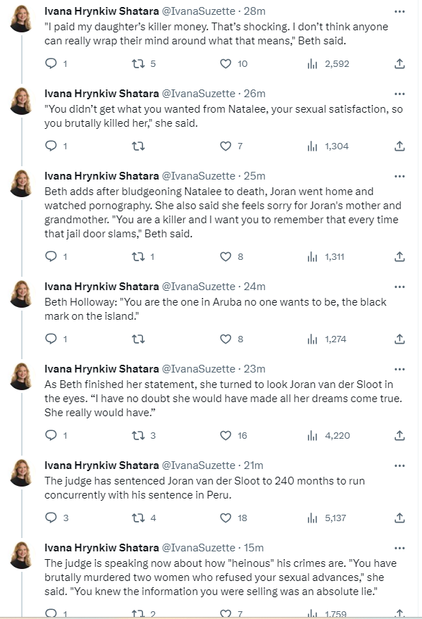 Through the years, there were many old articles detailing what Joran did after he returned home from his time spent with Natalee. There was even computer forensic evidence provided. Most of those articles are no longer available. Had Greta been able to give her statement, perhaps she would have included Beth’s comment to the court … among many others.