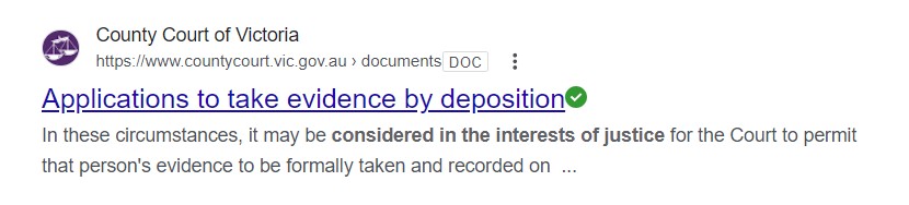 Wow, that's a rabbit-hole. Some of where it leads is limited to the Common Law Division of the County Court, which is not relevant. But the general basis is section 4 of the Evidence (Miscellaneous Provisions) Act 1958. This gives the Supreme Court and the County Court the power to take evidence in any place in Victoria. Question: does the Magistrates Court have a corresponding power?The law in Victoria says that a judge can order a video deposition as evidence, if a witness has a short life expectancy.