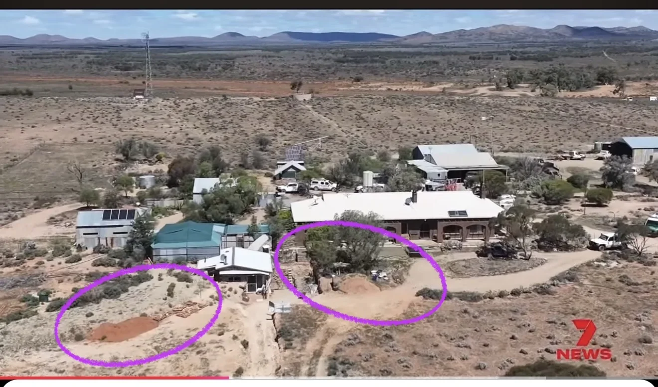 49 second mark. Very bottom right-hand side, behind the shed is a pile of red dirt. This isn't the best imagery; I have seen clearer somewhere on this thread, however I can't find it at the moment.