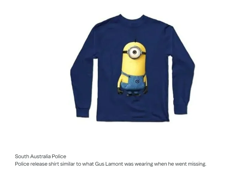 The police published a picture of Gus' shirt - I can't remember when. But it was re-published in the below link on 30th September.